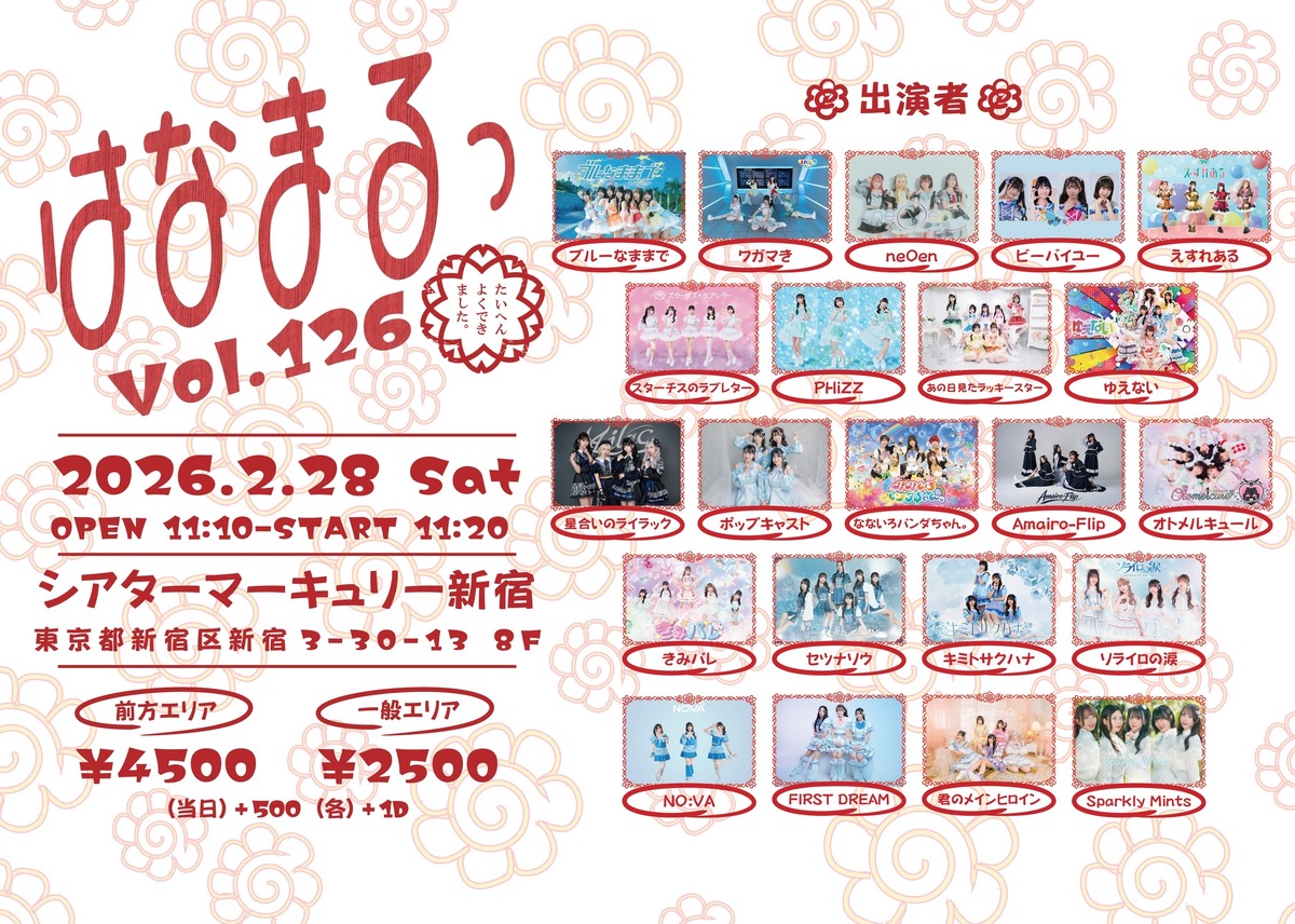 前方エリア4,500円 一般2,500円(別途1D) 当日各+500円