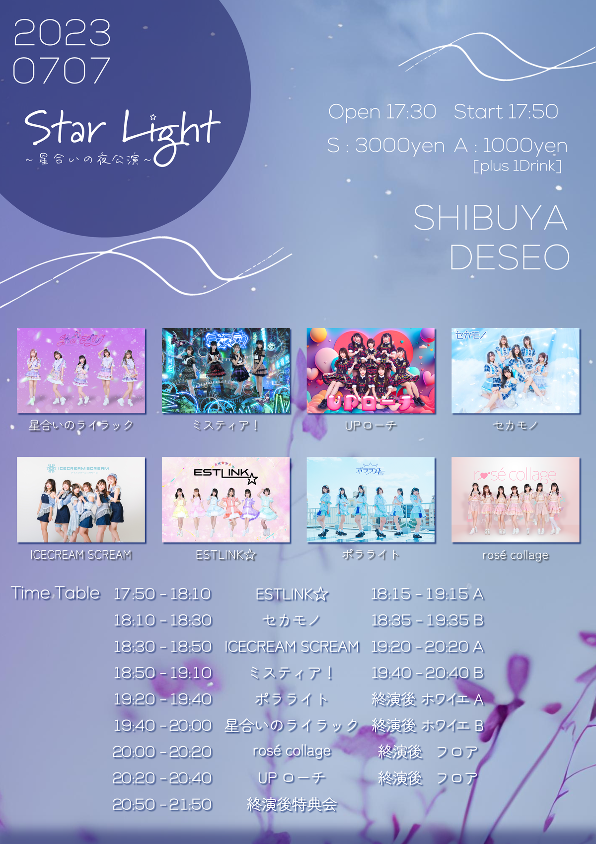 出演 星合いのライラック/ミスティア!/ICECREAM SCREAM/rosé collage/セカモノ/UPローチ/ポラライト/ESTLINK☆
