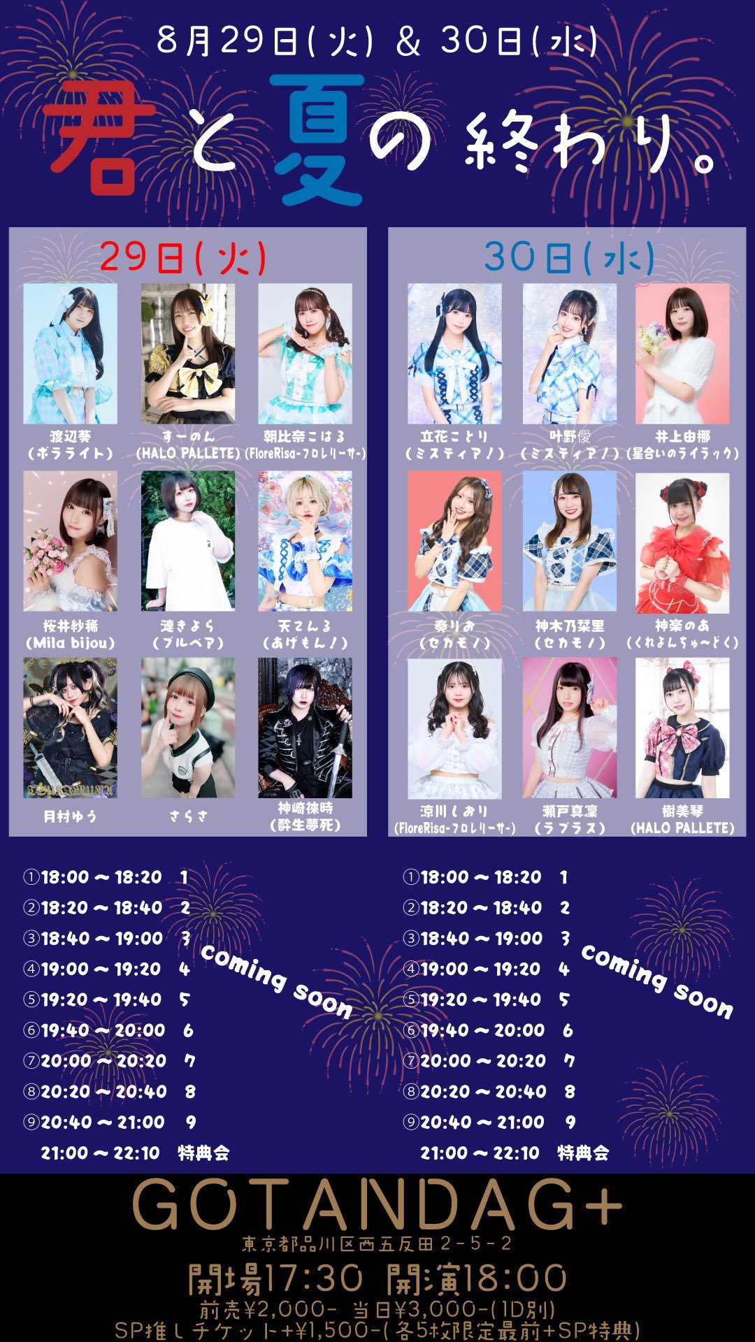 前売¥2,000- 当日¥3,000-(1D別) SP推しチケット+¥1,500-(各5枚限定最前席+SP特典)