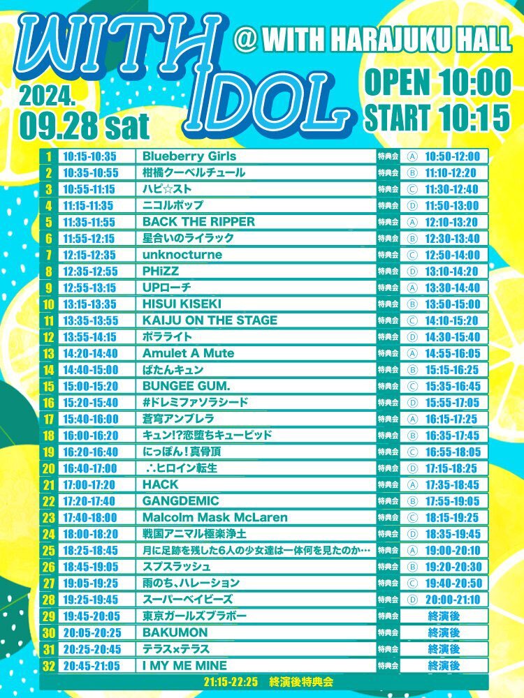Schedule BACK TO LIST 2024.9.28[Sat] WITH HARAJUKU HALL WITH IDOL 「WITH IDOL」 #4 WITH HARAJUKU HALL OPEN 10:00 / START 10:15 t.livepocket.jp/e/withidol-4 VENUE WITH HARAJUKU HALL 東京都千代田区 TIME 開場 / 0:00 開演 / 0:00 TICKET 前売 未定 / 当日 未定 ACT