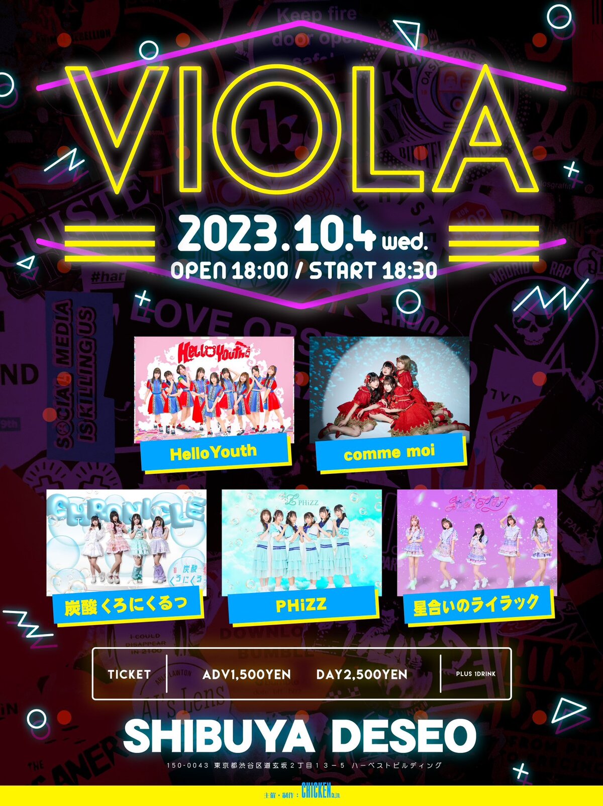 Schedule BACK TO LIST 2024.10.4[Fri] SHIBUYA DESEO 「VIOLA」 OPEN18:00 / START18:30 一般:¥1,500 / 当日:¥2,500※要1D SHIBUYA DESEO t.livepocket.jp/e/viola_1004 9/25 22:00〜 VENUE SHIBUYA DESEO 東京都千代田区 TIME 開場 / 0:00 開演 / 0:00 TICKET 前売 未定 / 当日 未定 ACT