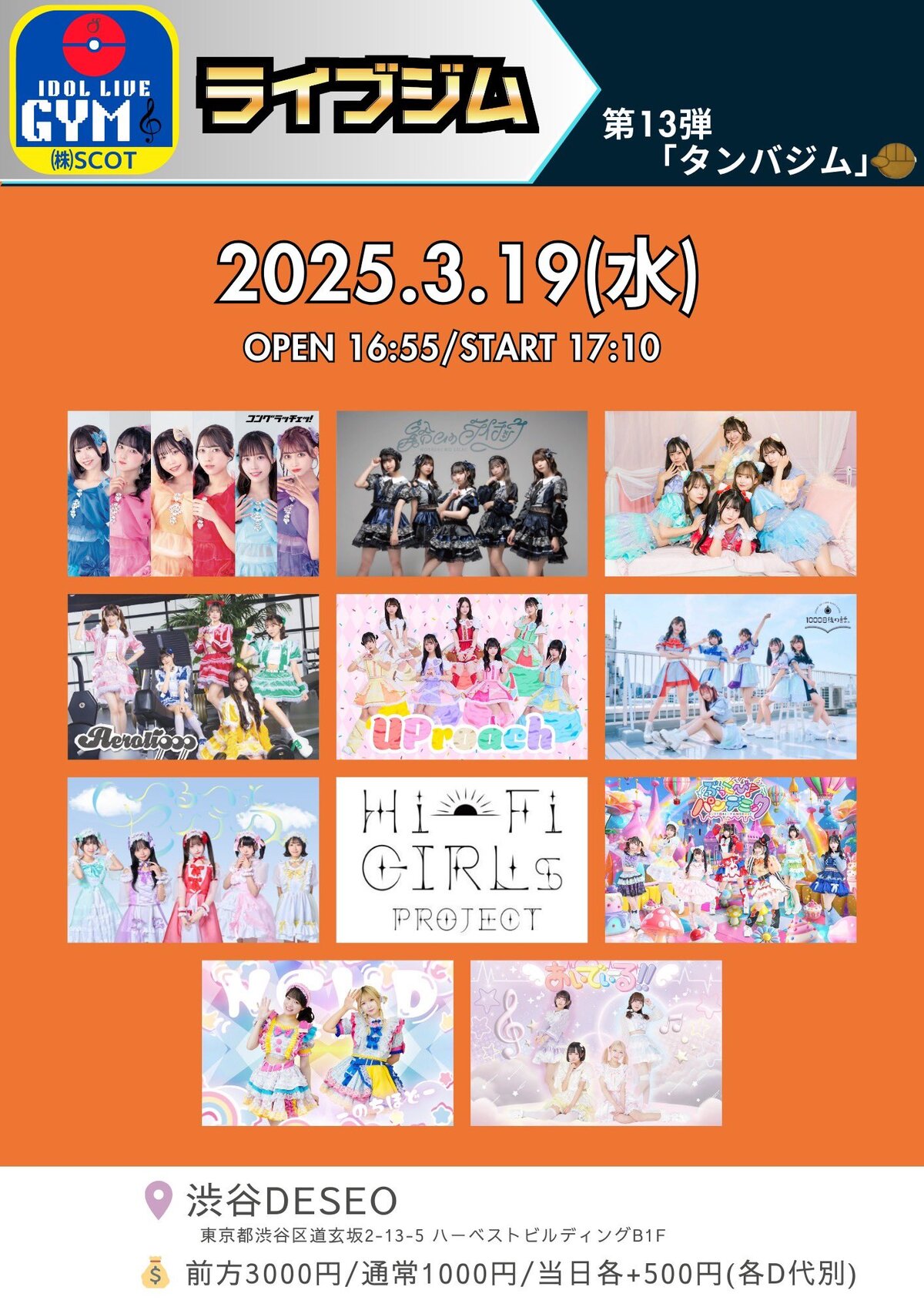 Schedule BACK TO LIST 2025.3.19[Wed] 渋谷DESEO ライブジム 第13弾 3/19 ライブジム 第13弾 渋谷DESEO 前売前方3000円/前売通常1000円/当日+1000円 t-dv.com/LiveGym13 販売期間2025/03/08 20:00〜 03/19 17:10 VENUE 渋谷DESEO 東京都千代田区 TIME 開場 / 0:00 開演 / 0:00 TICKET 前売 未定 / 当日 未定 ACT